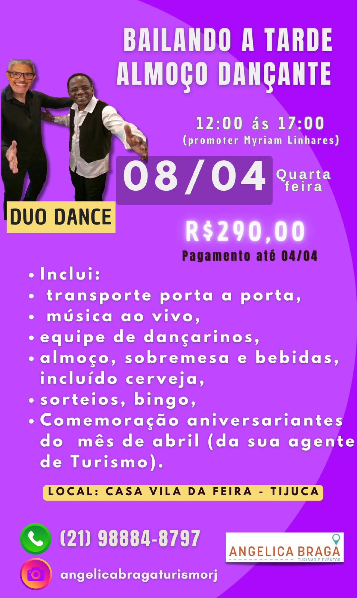 Inclui: Transporte porta a porta, sorteios, equipe de dançarinos, buffet variado com bebidas incluído a cerveja e sobremesa, sorteio e bingo.