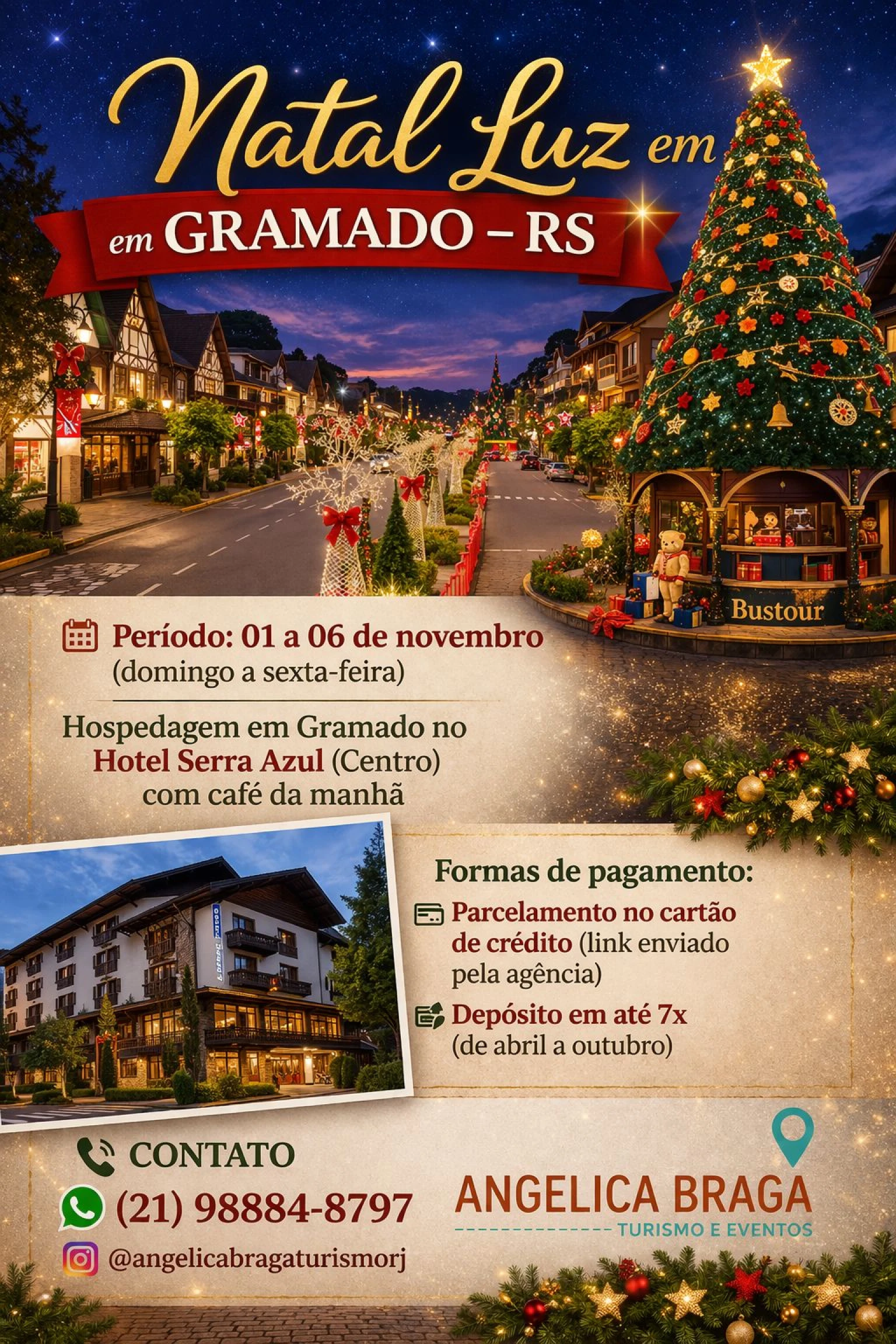 - Hospedagem em Gramado no Hotel Serra Azul (Centro) com café da manhã